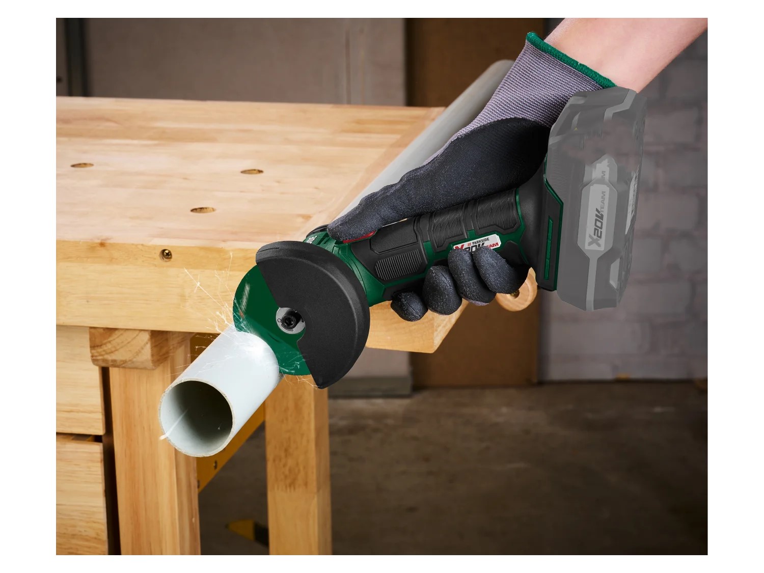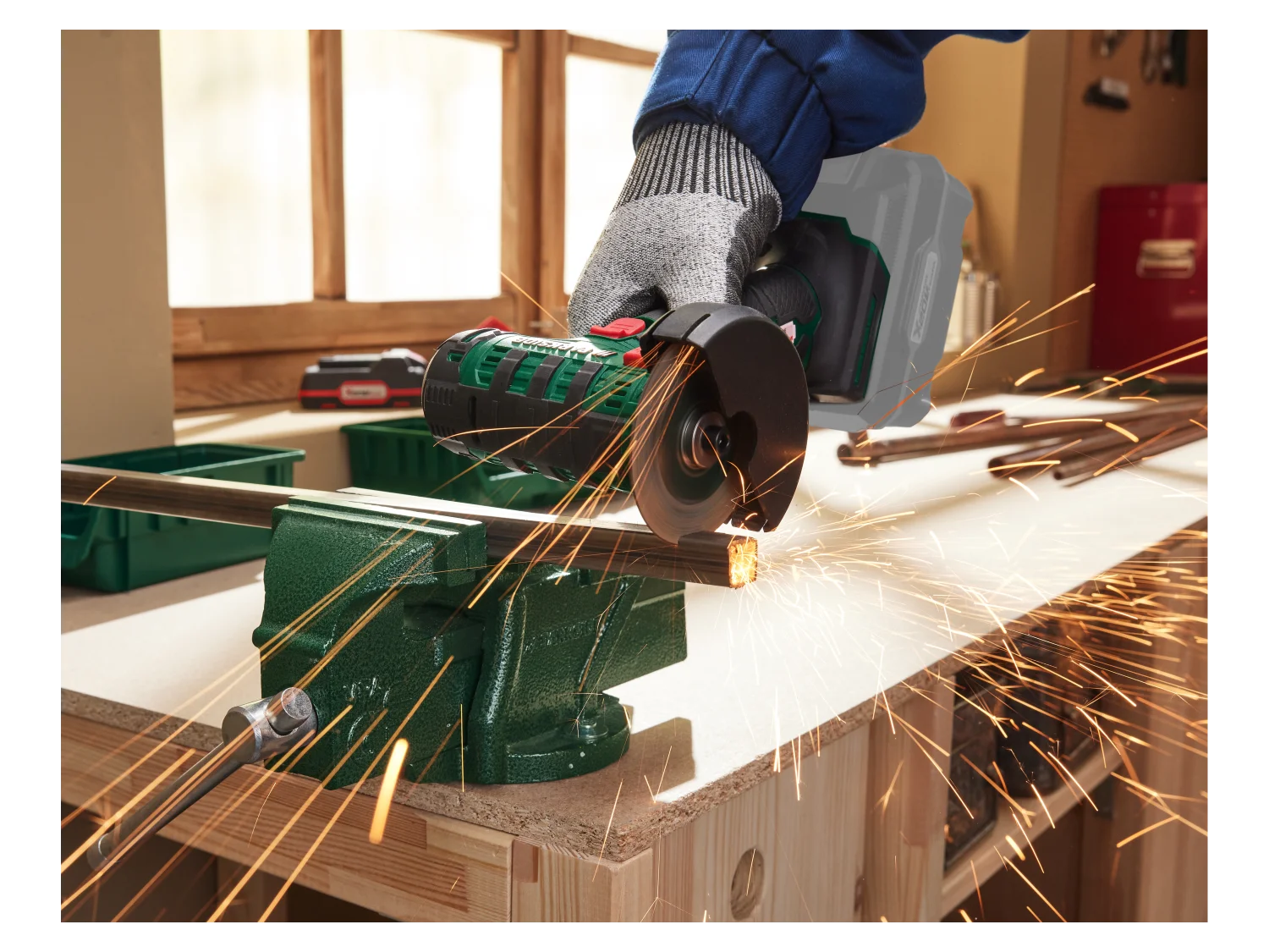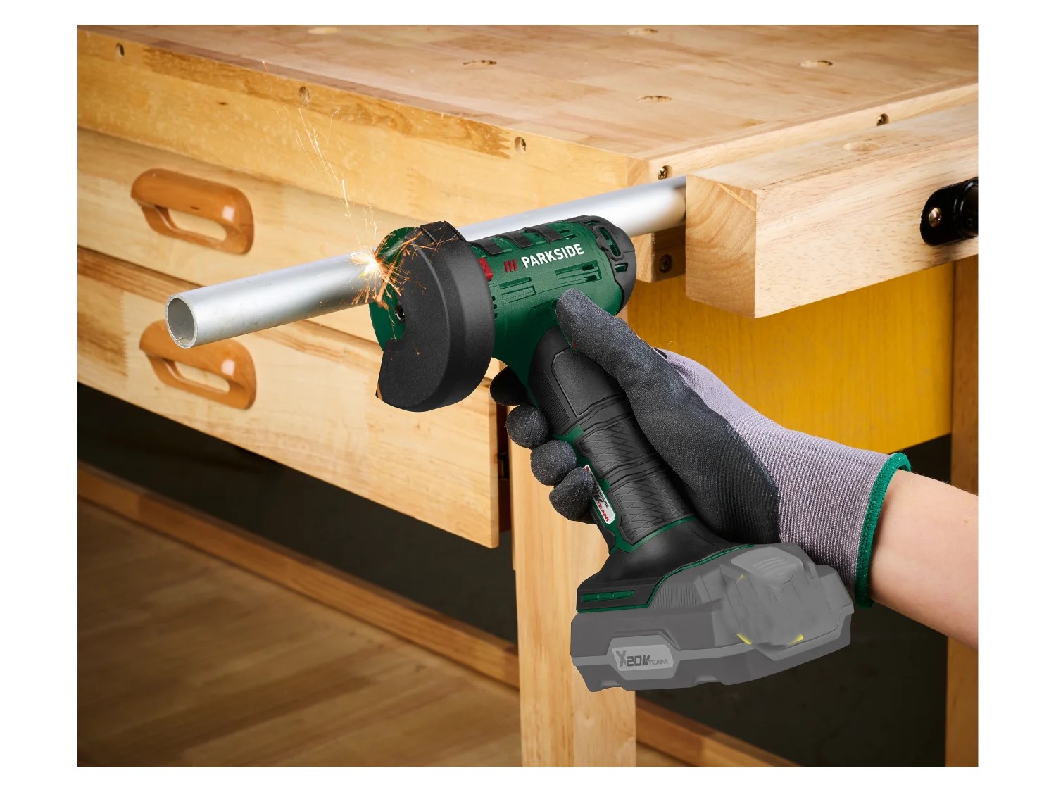 Zawarte wyposażenie: 1x tarcza tnąca do metalu (zamontowana), 1x klucz imbusowy
